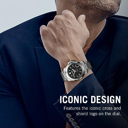 I absolutely love this watch. So much so that I bought the blue one too. It keeps amazing time +-3secs a day. It is indestructible and stylish and from a company with a Swiss Heritage that may just only in recent years include watches but has always represented the finest Swiss craftsmenship. It is beautiful. Great for a guy with a big wrist from the board room to the battlefield this watch will ensure...
