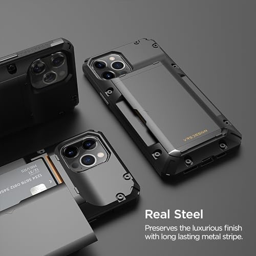 VRS DESIGN Damda Glide Hybrid Phone Case for iPhone 12 Pro Max, with [4 Cards] Sturdy [Semi Auto] Credit Card Holder Slot Wallet and Kickstand for iPhone 12 Pro Max 6.7 inch(2020) (Black)dummy
