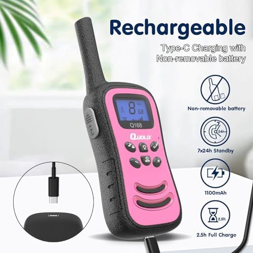 Quolix Walkie Talkies for Kids Rechargeable, Toys for Age 5-13 Girls LED Flashlight, VOX, Easy to Use Kids Walkie Talkies Long Range for Christmas Birthday Gifts Indoor and Outdoor Toys (2Pink)Recommendations