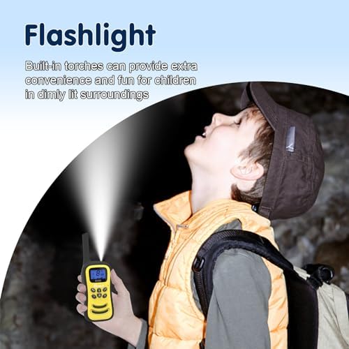 QUOLIX rechargeable walkie talkies built-in LED flashlight & LCD backlit display provide great convenience for kids to play at night.