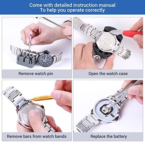 I was quite impressed with the quality and the variety of tools in this set.Sure it’s not made-in-USA quality, but quite nice for the price. I used the big wrench to take off the back watch cover and it worked.It’s a little clumsy and time consuming to line the bits with the slots in the watch’s back cover, but it works.Lots of other useful tools, like a double-edged pick to help get the battery in and out.