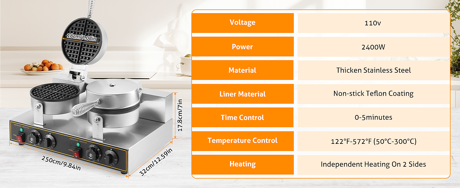 Great waffle maker, it's like you would find at a hotel breakfast area and does a great job.Great quality and value.Reliable and durable, heats up quickly and waffles are even heated and turn out great