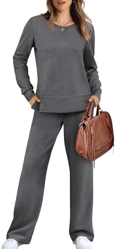 WIHOLL Women's 2 Piece Lounge Sets Sweatshirt Casual Travel Outfits Fashion Wide Leg Tracksuit Cozy Sweatsuits