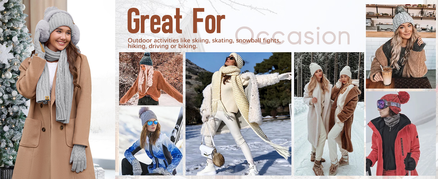 This winter warm 5-piece set is a must-have for winter outdoor activities such as skiing, skating, snowball fights, hiking, driving or biking, etc., which will utilize its warmth as well as keep you stylish.