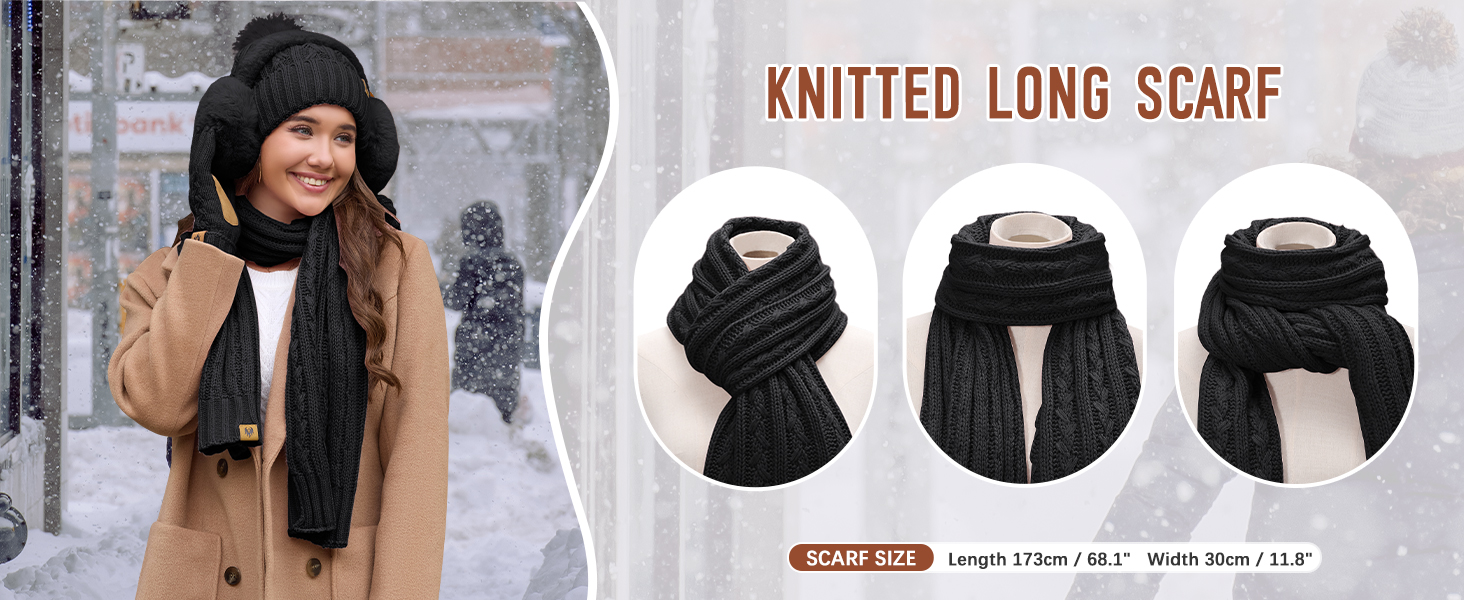HEEKPEK Women Winter Hat Long Scarf Touchscreen Gloves Earmuffs Socks 5 in 1 Set