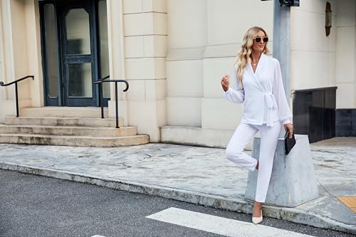 Salimdy Women Tie Waist Wrap Front Blazer and Pants Suits Elegant Dressy Outfits