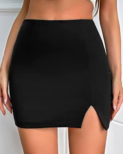 Women's 2024 Summer Side Slit High Waisted Mini Skirt Elastic Waistband Bodycon Split Hem Short Skirts