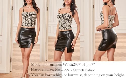 Women's Black Leather Skirts High Waisted High Side Slit Bodycon Mini Skirts
