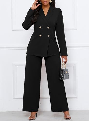 Women's Trendy 2024 Two Piece Outfits Blazer Jacket and Wide Leg Pants With Pockets Fall And Winter