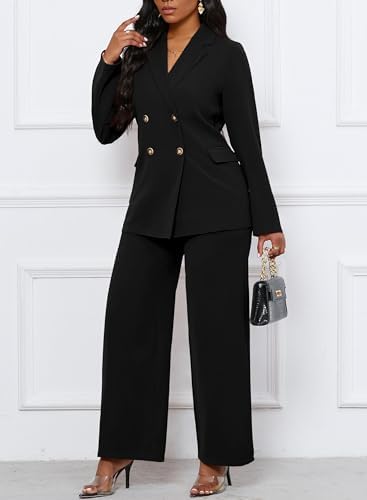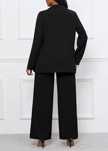 Women's Two Piece Outfits Casual Blazer Jacket Wide Leg Work Pants Business Suit Sets with Pocket