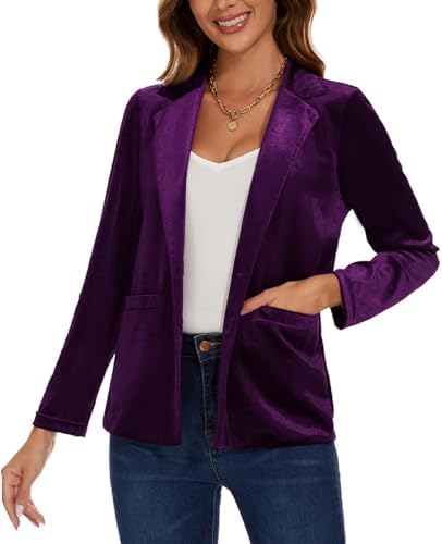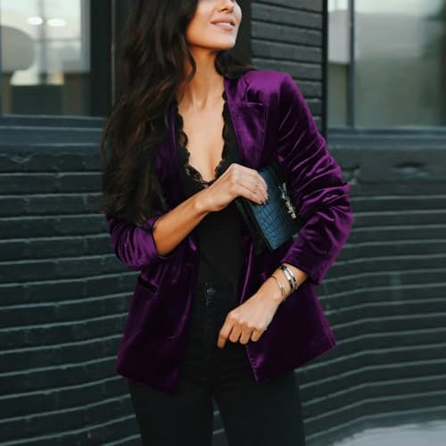 Women's Velvet Suit Blazer Jacket Casual Office Work Long Sleeve Button Pockets Tailored Jacket Coat Blazer