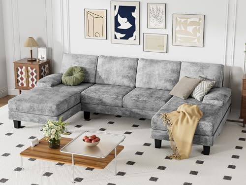 I was a bit apprehensive about buying a $400 couch off Amazon, but wow, this couch is fantastic! It really wasn’t difficult to put together: most of the time is just spent unpacking the boxes. It is very comfortable as well. It’s a bit firm, but I like a firm couch. Also the fabric is absolutely perfect. We have a cat who destroyed our last couch, and the chenille fabric is woven tight enough for her to not get her claws in. She has scratched it several times and hasn’t made a single tear, or any visible loose threads. This thing is also huge! My 6’3” husband and I can both fit on the couch comfortably with room to spare. The only small complaint is that the cushions don’t attach to the back of the couch, but I put adhesive Velcro on and it’s been perfect ever since. This is the perfect couch for that price!