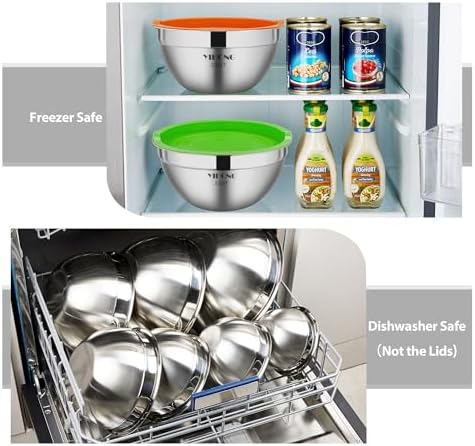 Our stainless steel mixing bowls have all the sizes you need for cooking, baking and more, set includes 4.5 , 3.6 , 2.7, 2.1 , 1.7 ,1.1 , 0.7quart, great to use for serving bowls to serve fruits, salad bowls, ingredient, cereal bowls, cookie bowls,and much more.