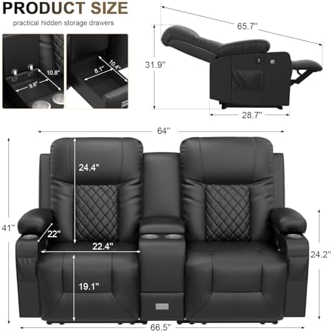 First of all, the loveseat sofa comes in 3 boxes. As mentioned by the seller, these boxes may not arrive at the same time, but they will all get to you.Second, assembly was very easy and didn't take a lot of time. The size is perfect for two adults with a center console to place things.I bought this to provide a place for our guests to sit and all were pleased with the extra leg extension, charging feature and cell phone holder. The price is reasonable for all that it features, thank you.